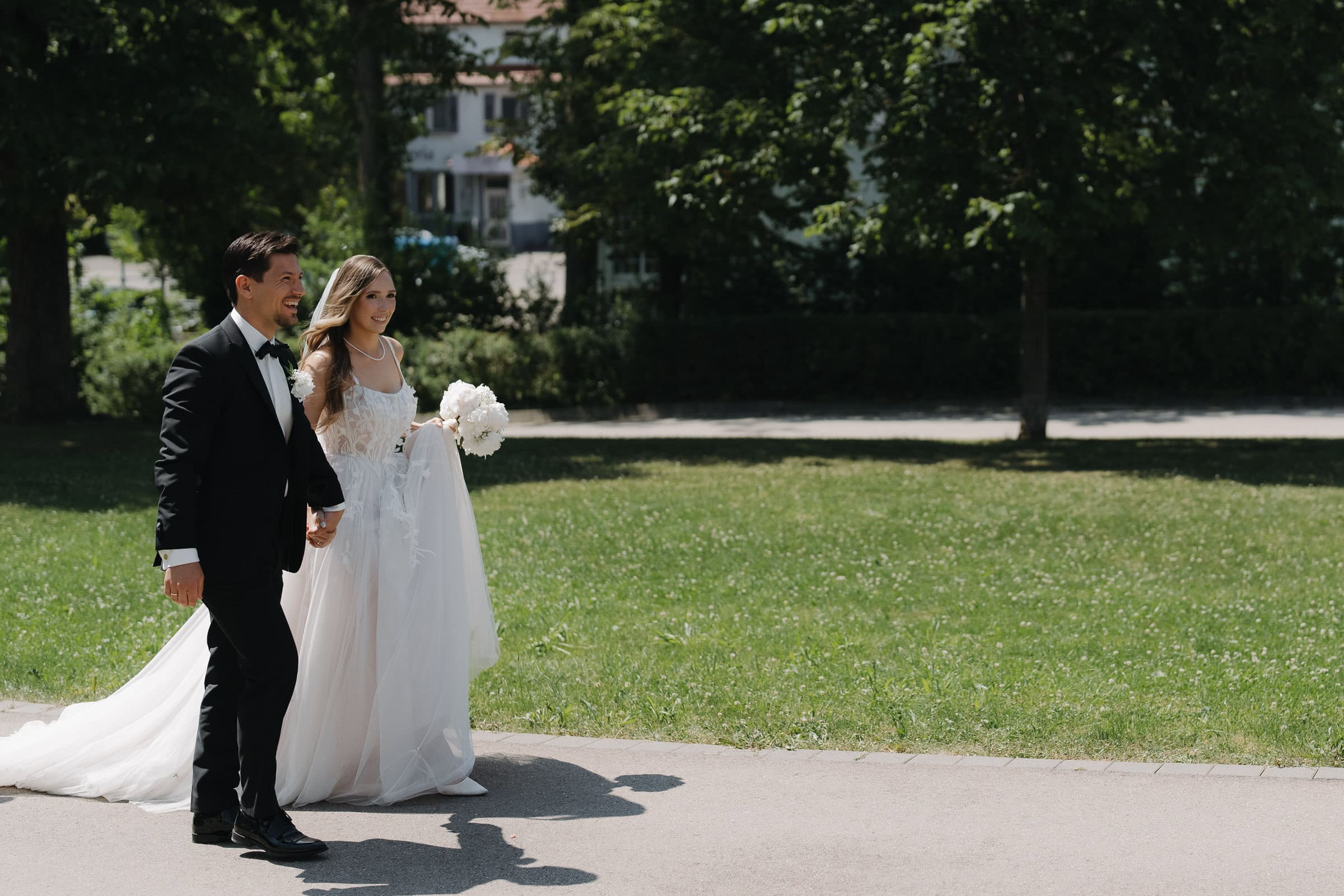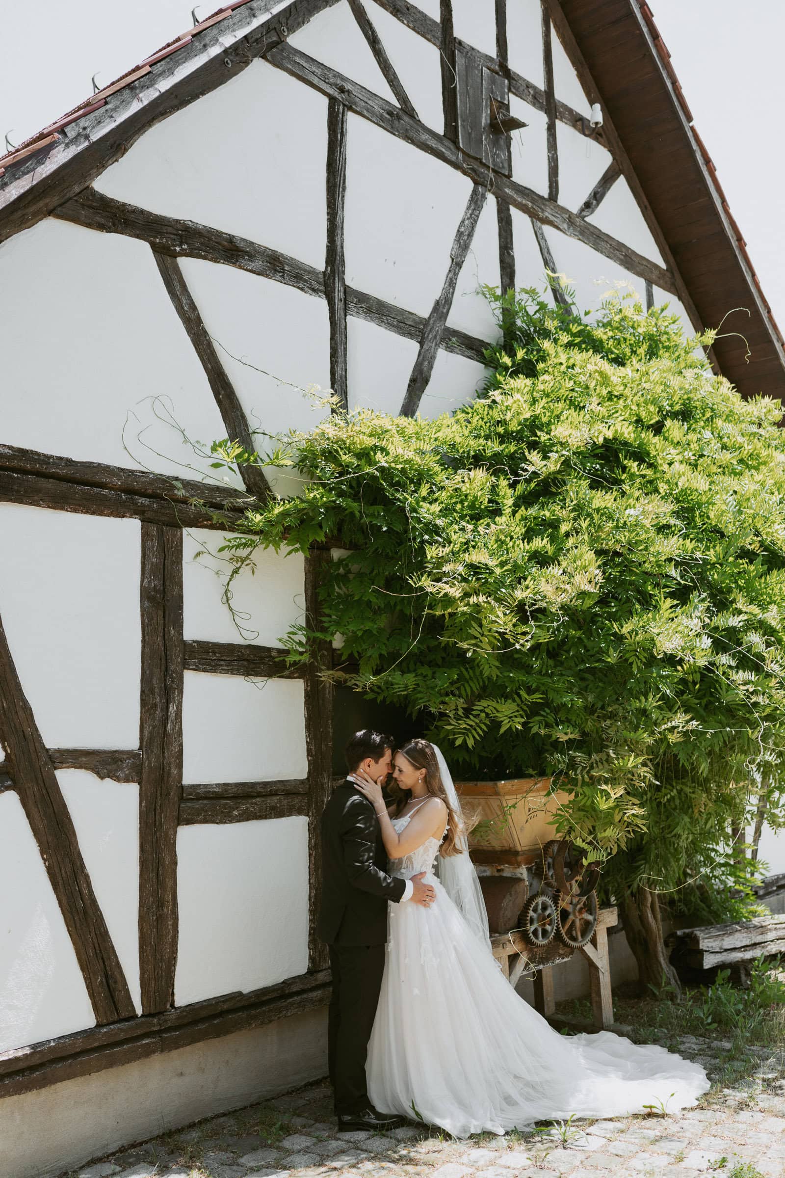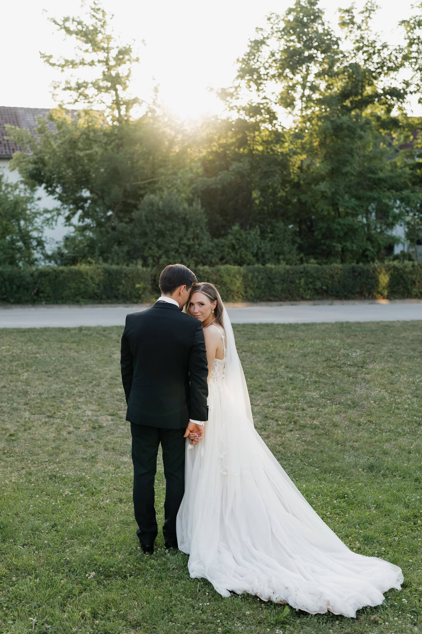 Nach der Trauung haben wir ein erstes kurzes Shooting gemacht. Mir ist es wichtig, dass die Gäste nicht lange auf das Brautpaar warten müssen. Deshalb halte ich diesen Teil bewusst kompakt. Es geht nicht darum, möglichst viel Zeit vom Tag zu nehmen, sondern darum, die Stimmung direkt nach der Trauung einzufangen, solange sie noch ganz frisch ist.