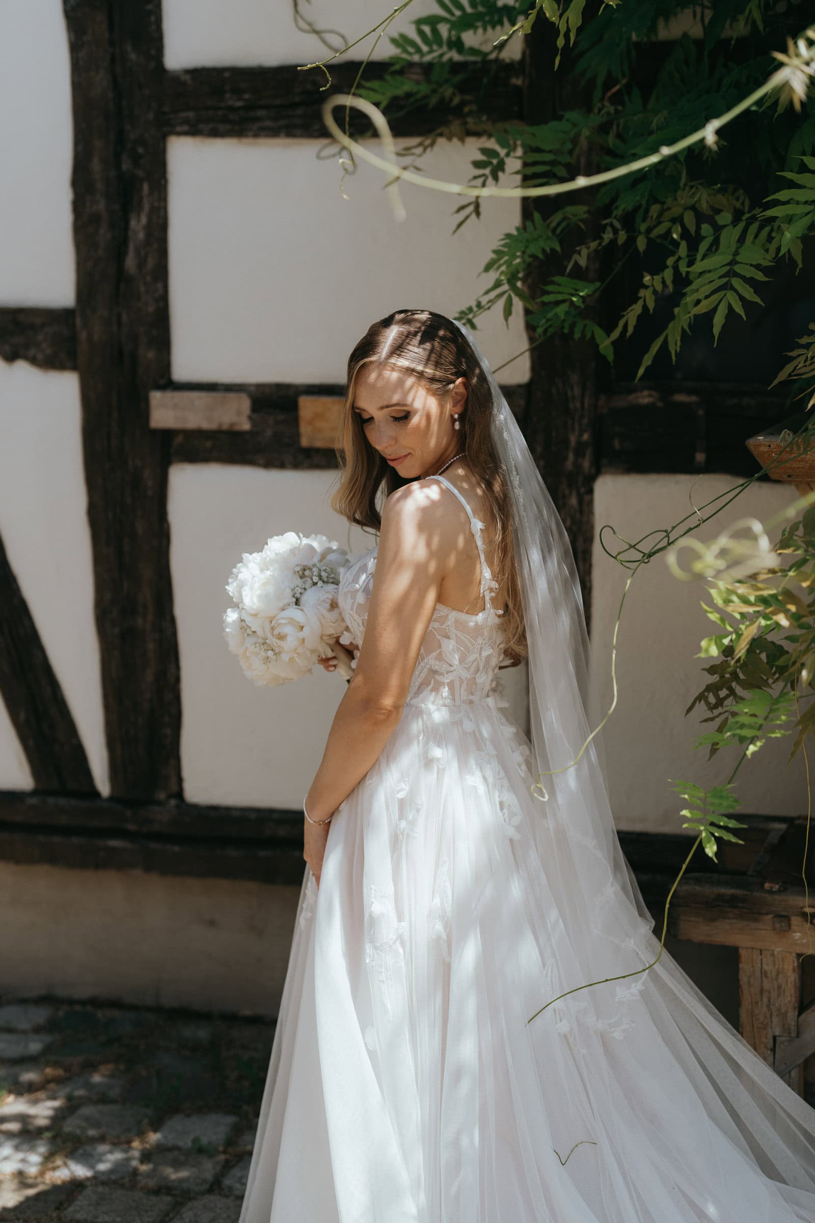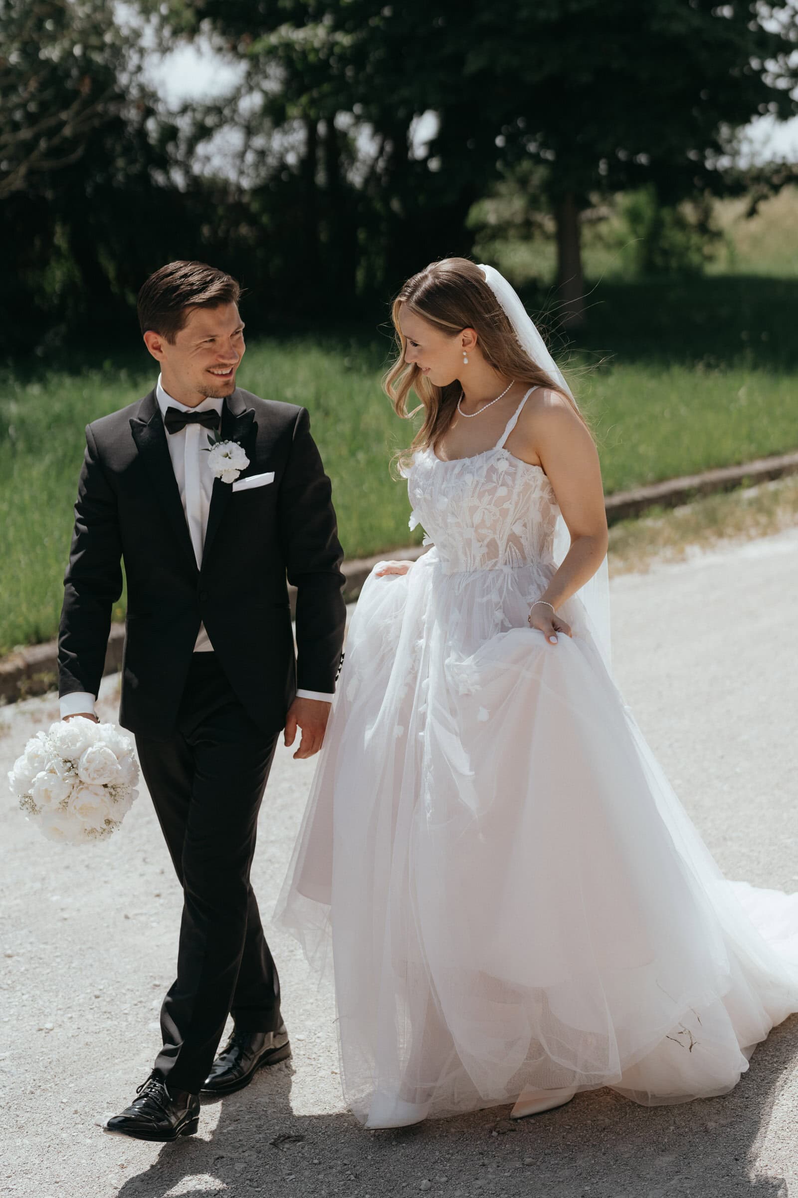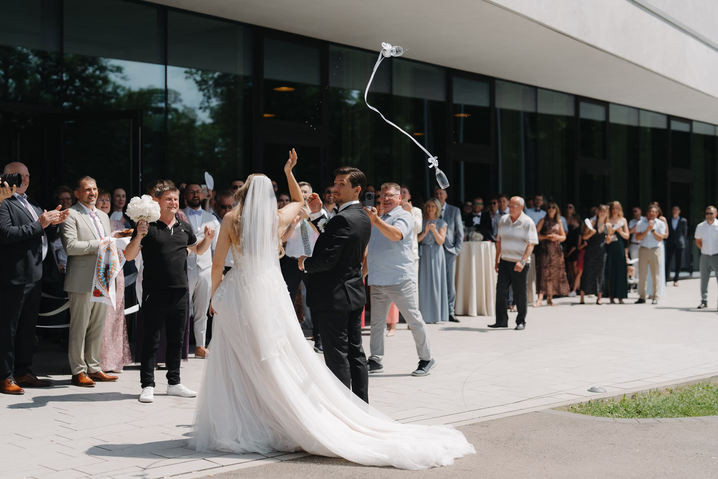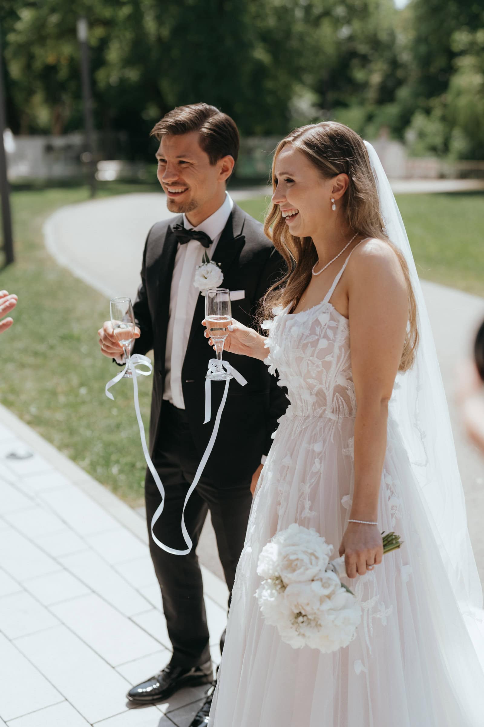 Nach der Trauung haben wir ein erstes kurzes Shooting gemacht. Mir ist es wichtig, dass die Gäste nicht lange auf das Brautpaar warten müssen. Deshalb halte ich diesen Teil bewusst kompakt. Es geht nicht darum, möglichst viel Zeit vom Tag zu nehmen, sondern darum, die Stimmung direkt nach der Trauung einzufangen, solange sie noch ganz frisch ist.